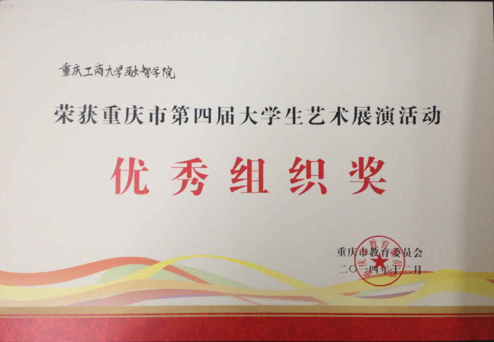 (通讯员 马凌凤)2015年1月5日(星期一)下午15:00,重庆市第四届大学生艺术展演闭幕式暨汇报演出在重庆师范大学校友会堂隆重举行。本次活动旨在表彰先进,展示各高校艺术教育改革和发展的成果,大力推进素质教育,丰富校园文化艺术生活,促进高校学生审美素质的提高。