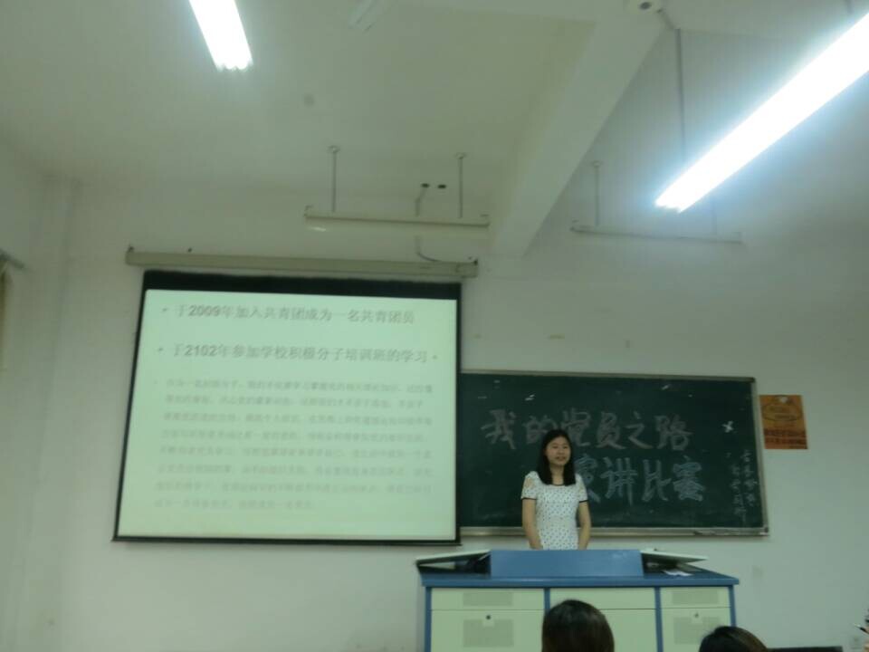 (经济系记者:陈美慧)为了鼓励学生党员完善自我、提升其综合素质,引导党员发挥先锋模范作用,我院经济系党总支学生党支部于2014年6月4日下午5:30在10204顺利开展“我的党员之路”演讲比赛。经济系学生党支部书记肖婵、组织委员范世超、专职辅导员杨邓旗及经济系全体学生党员、积极分子参加了本次比赛。
