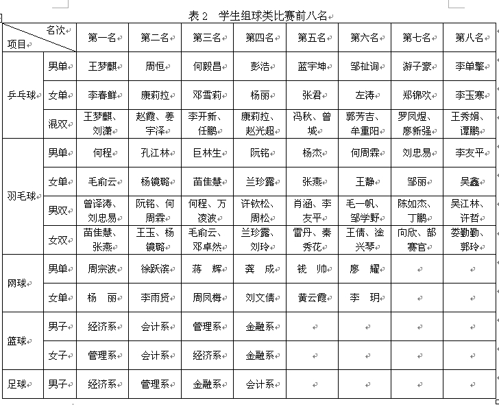 (通讯员:杨韩雪)2014年3月24至4月11日,我院积极开展2014年春季运动会球类项目。羽毛球、乒乓球、网球、篮球及足球项目相继在学院体育场顺利举行,近百名学生及教师参与了球类项目的角逐。经过三周紧张激烈的比赛,各球类项目前八名最终产生。