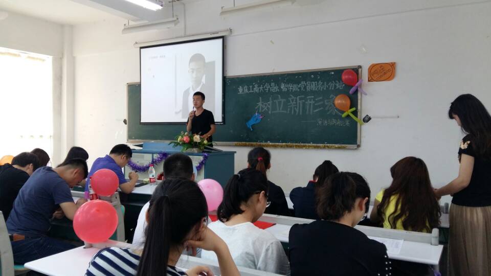 (通讯员 李桥)大学生党员是大学生中的精英和骨干分子,他们是先进性、模范性的代表。但目前部分大学生党员中出现了一些不和谐现象,部分学生党员不注重自身的品性修养,不坚持理论学习,不遵守学校的校规校纪,从而在学生群体中造成了不良影响。为了加强我系学生党员队伍建设,更好发挥学生党员的模范带头作用,进一步培养广大积极分子从自我做起倡导学生党员讲形象。经济系党服小分站与2015年5月21日中午12:20在10410教室以如何树立党员新形象为主题组织开展了演讲与朗诵比赛。经济系学生党支部书记肖婵、专职辅导员赵婷、杨邓旗担任本次比赛评委。