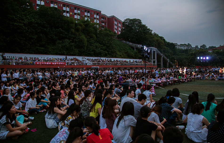 伴随着欢畅的节奏,一曲《青苹果乐园》拉开了我院第二届草坪音乐节的序幕。炫彩灯光在夜的映衬下显得更加夺目,动人歌喉在台下呐喊中显得更加激情。热情火辣的《Halo》、深情暖心的《我只在乎你》、清新复古的《枉凝眉》,一首首经典曲目的完美演绎使得整场晚会亮点无数,台下观众的情绪也不断高涨,掌声和呐喊声连成一片。不仅如此,本次晚会还新颖地采用了点歌模式,为观众们与歌手互动提供了平台,满足了观众能够在现场听到自己喜欢的歌曲的愿望。尽管晚会精彩连连,高潮更是不断,然而计划赶不上变化,在晚会进行到尾声现场却突然停电。虽然少了配乐,虽然身处黑暗,却依旧无法打消观众们高涨的情绪。黑暗中,观众们纷纷拿出手机点亮舞台,和所有歌手一起合唱院歌和《我的未来不是梦》,悠悠的歌声伴随着呼啸的风声响彻嘉陵江畔,雄雄的壮志伴着凌冽的决心穿透融智夜空。至此,本次草坪音乐节顺利结束。