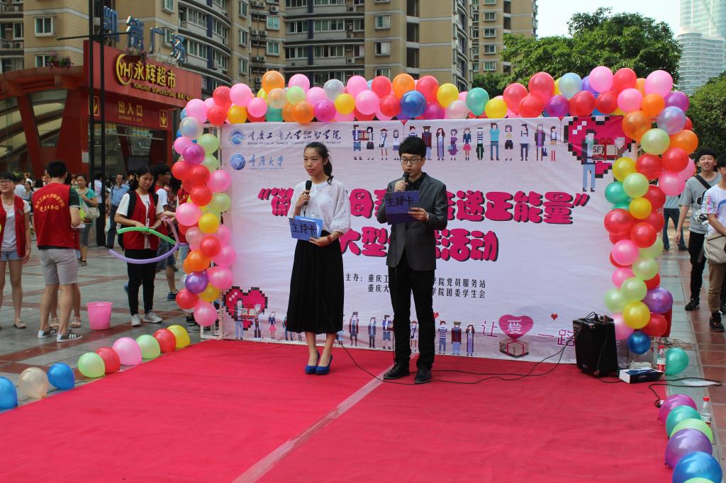 (通讯员 苏峰 蓝钧莲)2015年5月10日,我院党员服务站携手重庆大学继续教育学院团委学生会共同开展的“微笑献母亲,传递正能量”公益活动在沙坪坝三峡广场顺利开展!
