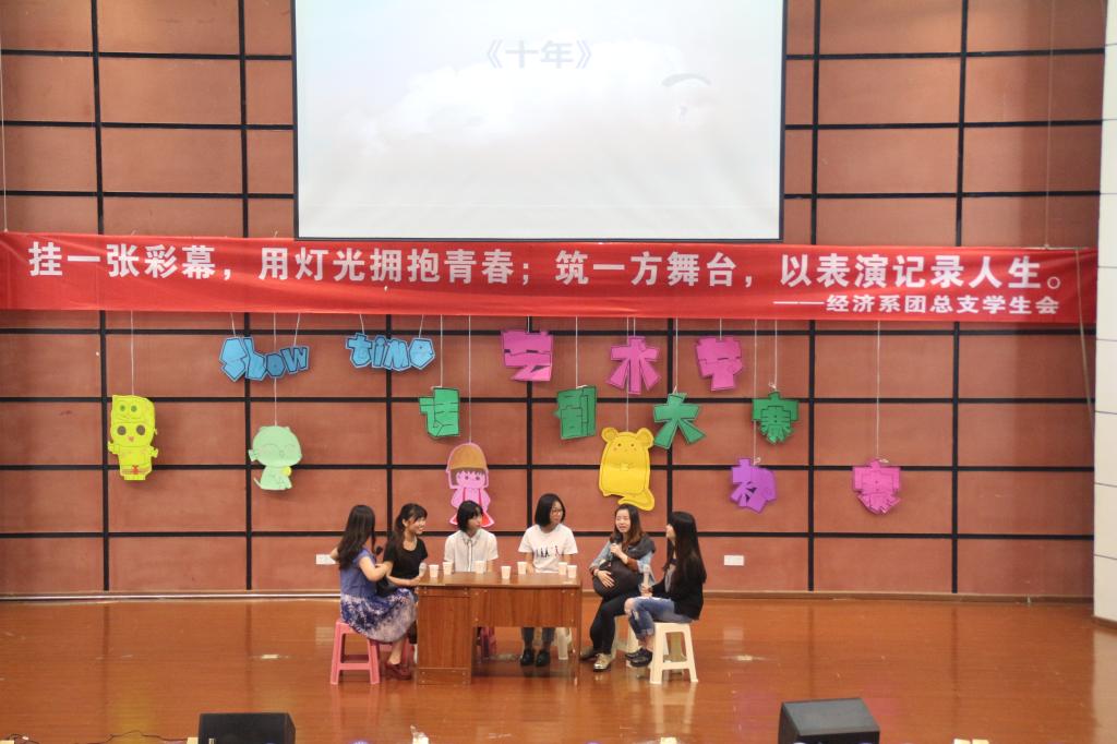 (通讯员 姚惠)挂一张彩幕,用灯光拥抱青春;筑一方舞台,以表演记录人生。重庆工商大学融智学院第六届“SHOW TIME”艺术节“炫彩青春”话剧大赛初赛于2015年4月20日中午12点在学术报告厅顺利开展。此次活动由重庆工商大学融智学院团委主办,经济系团总支学生会承办。担任本次大赛的评委是团委副书记李刚,团委干事马凌凤;到场的嘉宾有院,六系学生会,社联,大自委,党服,新闻中心,艺术团各主席团们。